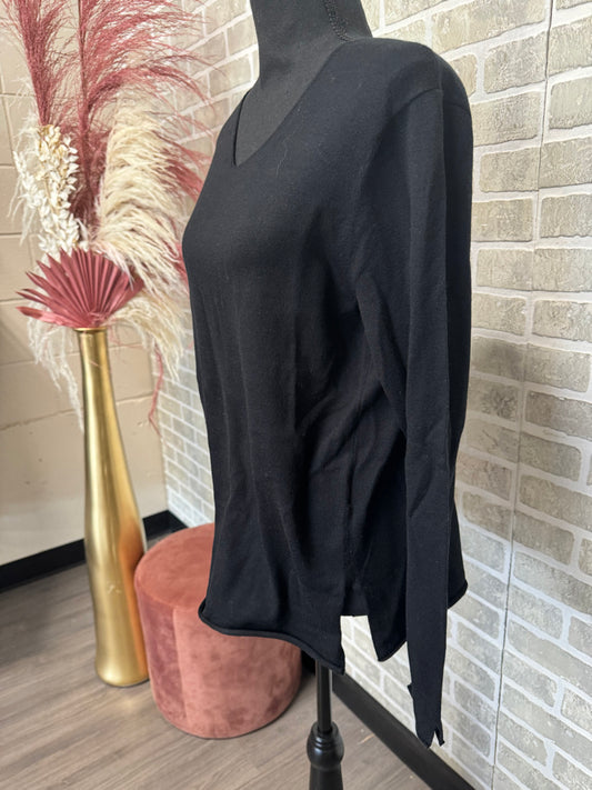Black Long Sleeve V-Neck Shirt-10045