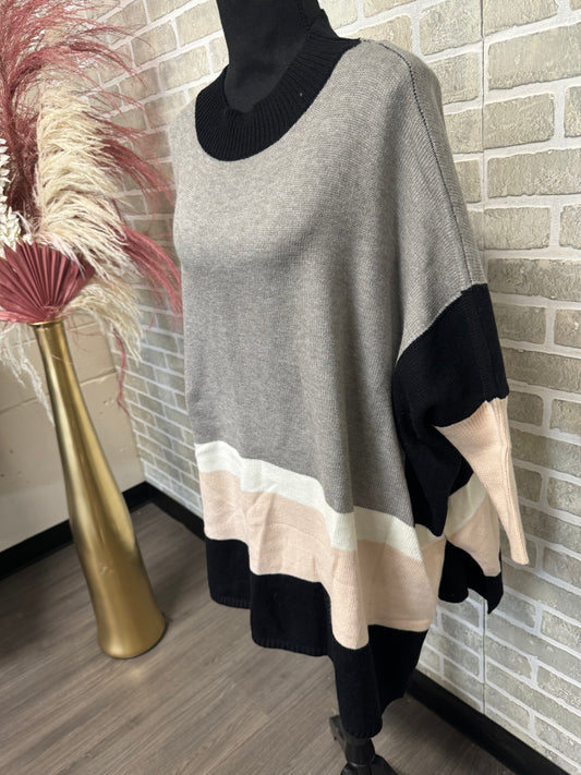 Long 3/4 Sleeve Quad Colour Sweater-22004