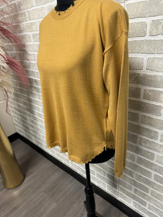 Mustard Frayed Long Sleeve Shirt- 22001
