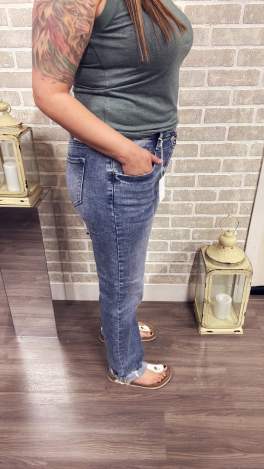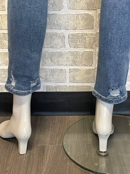 CURVY Mid-Rise Skinny Shark Bite Destroyed Hem- 10000