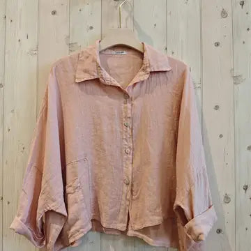 This 100% linen top arrives in lovely rose or beige shades. It's soft, comfy, and effortlessly transitions from casual hangouts to dressed-up occasions.